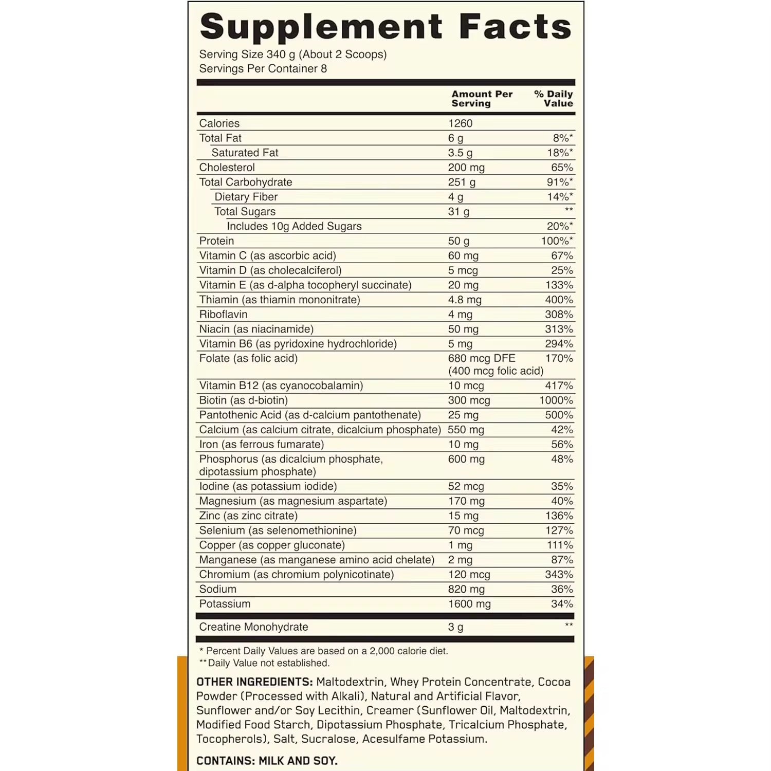 Build serious size and strength with Serious Mass Gainer, the ultimate formula for muscle growth and recovery. Each serving packs 50g of protein and 1,260 calories — the perfect combination for athletes looking to bulk up fast.